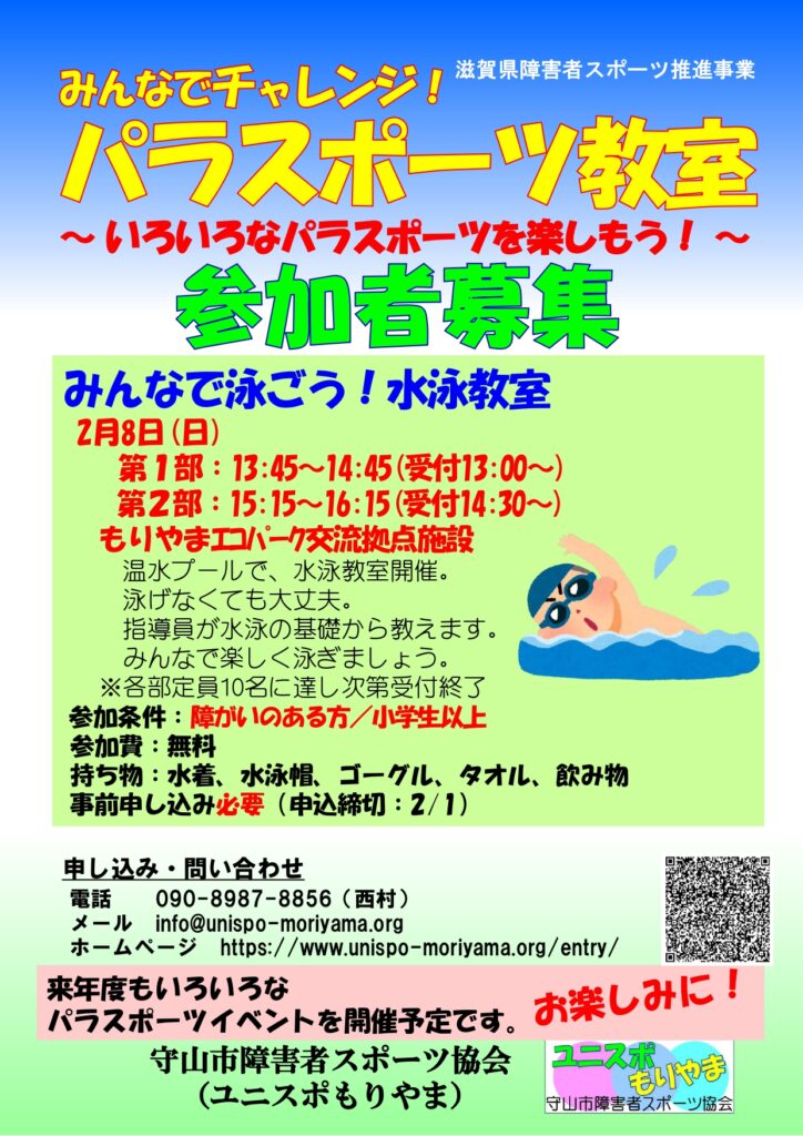 みんなで泳ごう水泳教室のお知らせ